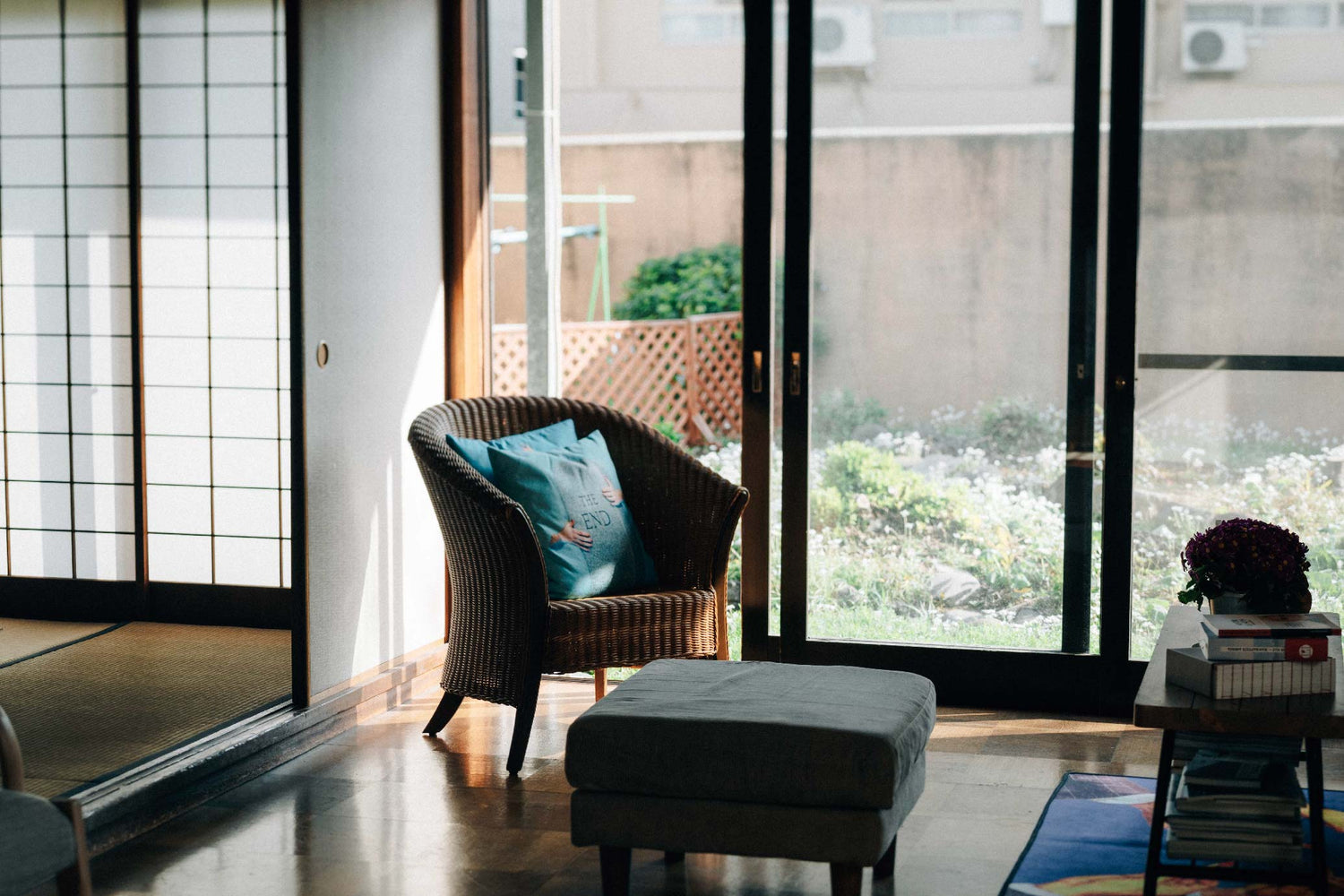 1970年頃に建てられたこの家の1階にはリビング、キッチンと和室があり、天井の高い玄関ホールから階段を上ると2階に4部屋がある。おなじ造りの隣家と共同の庭があり、窓を開けると気持ちのよい風が入ってくる。