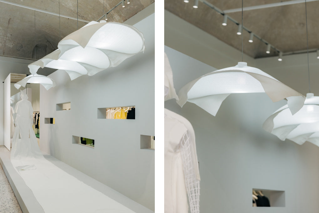 このプロジェクトから誕生した照明器具のプロトタイプをミラノの旗艦店ISSEY MIYAKE / MILANでは、4月8日(火)から4月13日(日)までのミラノデザインウィーク期間中、インスタレーション形式で展示しました。