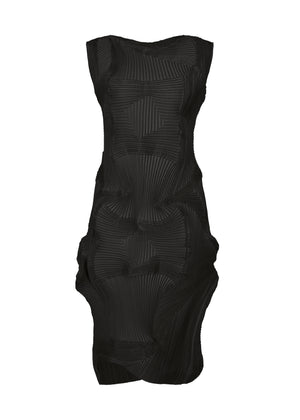 タテとヨコのプリーツ形状をパッチワークのように配置したSteam Stretch(※)のワンピース。幅広いシーンで活躍できるアイテムを、独自のテキスタイルによって他にないデザインに仕上げました。一部植物由来原料のポリエステルとリサイクルポリエステル糸を使用しています。