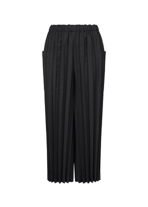 軽く柔らかな肌触りの生地にプリーツ加工を施したパンツ。シンプルでコーディネートのしやすいデザインです。両脇にポケットがあります。