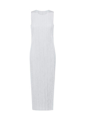 ランダムにプリーツを施したシーズンレスに展開する定番商品。ストレートスタイルのロングワンピースです。