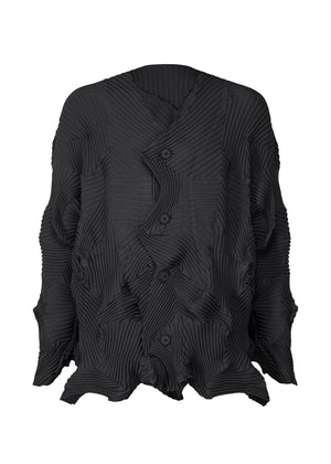 Baked Stretch(※)による自由なプリーツ目が特徴のカーディガン。同じシリーズの柄ものに比べて柔らかな風合いです。