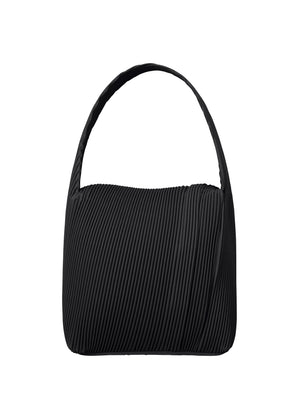 斜めにプリーツ加工を施すことで、四角いフォルムでありながら丸みを帯びた印象を与えるワンショルダーバッグ。ショルダー部分まで一体でプリーツ加工を施すことで生まれる、ミニマルな見た目とフィット感が特徴です。