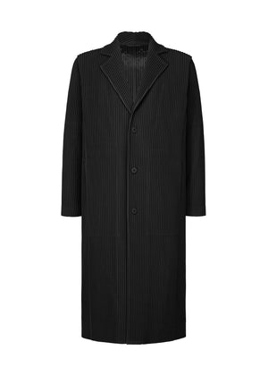 シンプルなデザインのロングテーラードジャケット。ポリエステル素材特有の乾きやすさと携帯性が特徴です。フォーマルからカジュアルまで幅広いシーンで活躍します。両サイドと内側にポケット、背中にセンターベントがあります。