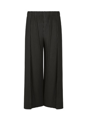 軽やかな着心地のワイドパンツ。石柱のねじれを彷彿とさせる四角い構造が特徴です。両サイドにポケット、ウエストにドローコードがあります。前開きボタン仕様です。