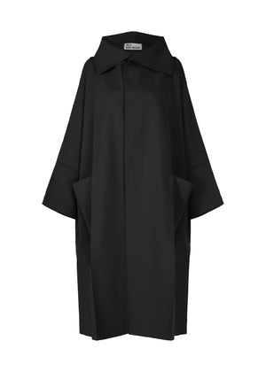 132 5. ISSEY MIYAKEらしい、フラットに折りたためる服の構造を、デイリーなアイテムに落とし込んだコート。シャープなシルエットを意識し、折り線を利用したスリットやポケットがアクセントになっています。