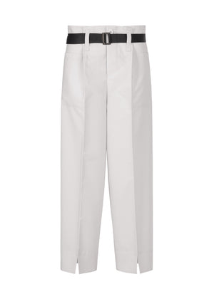 132 5. ISSEY MIYAKEらしいフラットに折りたためる服の構造を、デイリーなアイテムに落とし込んだパンツ。シャープなシルエットを意識し、折り線を利用したスリットやポケットがアクセントになっています。付属のベルトでウエストの調整が可能です。