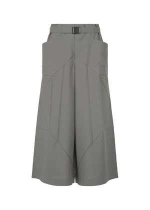 山折りと谷折りを組み合わせることで、着用時に四角いエッジが生まれるパンツ。植物由来のポリエステル生地を使用しています。付属のベルトでウエストの調整が可能です。