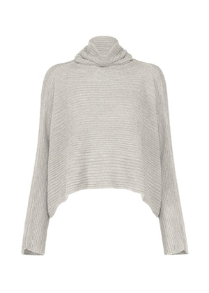 直線的なアウトラインで構成した、ショート丈のニット。幅の違う編みが、繊細で温かみのある印象を与えます。