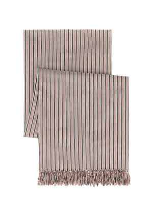 様々なストライプ柄を配したストール。ストライプ柄のウールにシルクの生糸を織り込むことで、薄さとハリ感を持たせています。肩に掛けたり、首に巻いてボリューム感を楽しんだり、様々なアレンジをお楽しみいただけます。
