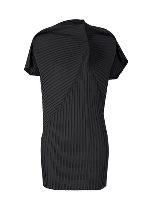 折りを入れてプリーツ加工を施すことで生まれる、立身体的でダイナミックなフォルムが特徴の半袖トップ。大胆な折り目を付けてマシンプリーツ加工を施すことで、折り目が自立し新しいシルエットが生まれます。強撚のポリエステルを使用しており、シャリ感と程よい透け感が軽やかさを感じさせます。オケージョンシーンにも対応可能なエレガントなデザインです。