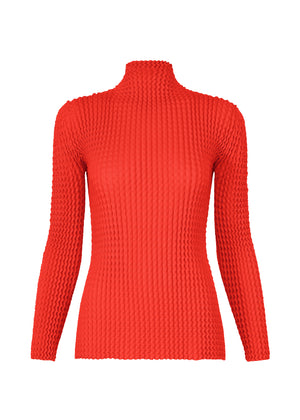 スポンジのように伸び縮みする表情豊かなニットのハイネック長袖トップ。強捻糸で編み上げキックバックに富んだ素材は一見コンパクトですが、着用すると身体に程よくなじむシルエットに変化します。ケアしやすい柔らかなテクスチャーのコットンポリエステル素材を使用した、日常に寄り添うアイテムです。