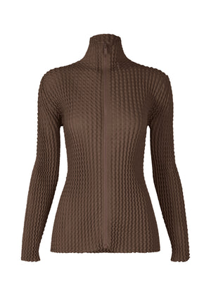 スポンジのように伸び縮みする表情豊かなニットのジップアップカーディガン。強捻糸で編み上げキックバックに富んだ素材は一見コンパクトですが、着用すると身体に程よく馴染むシルエットに変化します。ケアしやすい柔らかなテクスチャーのコットンポリエステル素材を使用した、日常に寄り添うアイテムです。