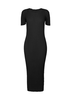 スポンジのように伸び縮みする表情豊かなニットの丸首半袖ワンピース。強捻糸で編み上げキックバックに富んだ素材は一見コンパクトですが、着用すると身体に程よく馴染むシルエットに変化します。ケアしやすい柔らかなテクスチャーのコットンポリエステル素材を使用した、日常に寄り添うアイテムです。