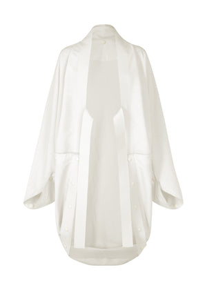 軽やかな布地の魅力を最大限に引き出すために、“耳”と呼ばれる織物の端さえも切り落とさず、一枚の布が持つ姿そのままを衣服として表現したシリーズのコート。上下を反転させたり、ボタンの留める位置をアレンジすることで、多様なフォルムとスタイルが楽しめます。布地にはIM MENがファーストシーズンから展開する浮遊感漂うシリーズ「AIR」のテキスタイルを使用しています。