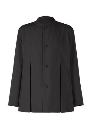 前身ごろと後ろ身ごろにハンドプリーツ加工を施した、軽やかで動きやすいデザインが特徴のスタンドカラージャケット。型崩れしにくく、シワもできにくい、イージーケアなテキスタイルに仕上げました。