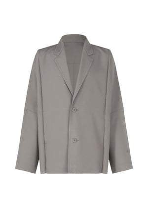 立体を平面に折りたたむ技術を衣服デザインに応用したシリーズのジャケット。裾裏部分にあるポケットに折りたたんで収納するとコンパクトに持ち運べます。デザインに適応した、たたみやすくシワになりにくいテキスタイルが特徴です。プレスされたラインは収納時に折りたたみのガイドとなり、着用時には身体に沿いながら構造のエッジを際立たせます。