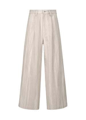 タテ糸とヨコ糸の色を変え、刷毛で描いたような柄をジャカード織機で織ったシリーズのワイドパンツ。ふくらみのある柔らかな質感が特徴です。