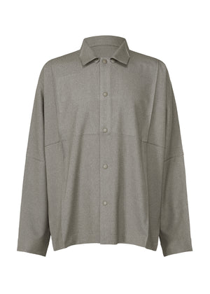 ハンカチーフのようにコンパクトで、フラットに折りたたむことができる長袖シャツ。襟を着用時に組み立てる仕様をはじめとする幾何学的な構造を、プレスされたラインによって視覚的にも楽しめます。ふっくらとして暖かく、軽くてシワになりにくい杢調の生地は、二種類の糸を染め分けて、ウールライクに織り上げました。