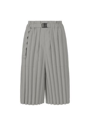 半円型のハンドプリーツ加⼯を施したハーフパンツ。透け感のない程よい厚みの素材感とカーブ状のプリーツ⽬が、⼒強くも柔らかな表情を⽣み出します。両脇にポケットがあります。