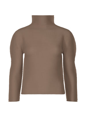 縦と横にプリーツのかかった、伸縮性があるストレッチプリーツのハイネック長袖トップです。