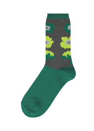 種から芽が出て花が咲くまでの様⼦を描いた柄のソックスです。