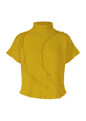 コットン特有の着心地の良さと、伸縮性のある凸凹とした素材感が特徴のカリフラワーの半袖トップ。縫い目を表に出しラインで前髪のようなシルエットを表現しました。