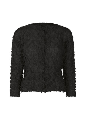 薄地のポリエステル素材にクラッシュプリーツ加工を施した、立体感のある丸首長袖カーディガンです。