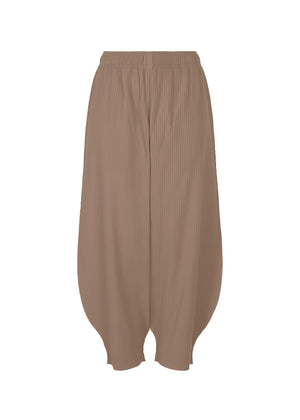 ストレッチ性のある細くやわらかな糸で編んだニットにプリーツ加工を施した、軽量でソフトな肌触りが特徴的なファインニットプリーツのパンツ。両脇にポケットがあります。