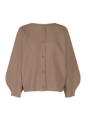 ストレッチ性のある細くやわらかな糸で編んだニットにプリーツ加工を施した、軽量でソフトな肌触りが特徴的なファインニットプリーツの長袖カーディガン。深みのあるカラーとラウンドしたフォルムがニットのような暖かみを感じるアイテムです。両脇にポケットがあります。