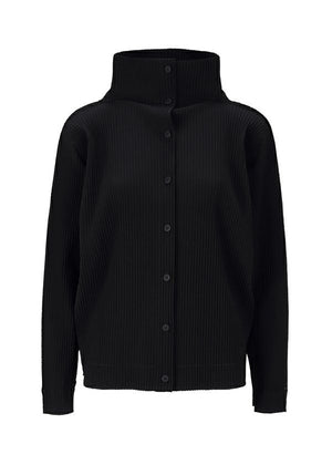 ストレッチ性のある細くやわらかな糸で編んだニットにプリーツ加工を施した、軽量でソフトな肌触りが特徴的なファインニットプリーツのハイネック長袖カーディガンです。