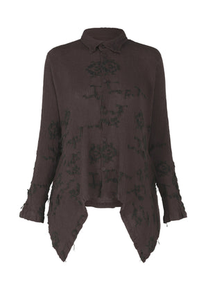 軽くしなやかな肌触りが特徴的なKYO CHIJIMIに、凹凸のある房入りの刺繍を幾何学柄に施した長袖シャツ。通常の強撚糸にさらに撚りをかけた極細綿糸を使用し、産地独自の織機で織り上げています。