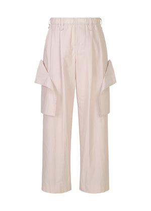 生地に少しずつワッシャー加工を施すことで生まれる自然なシワの表情が特徴的なパンツ。両サイドの大きなポケットが目を引くデザインです。ウエストにベルトループがあります。前開き仕様です。