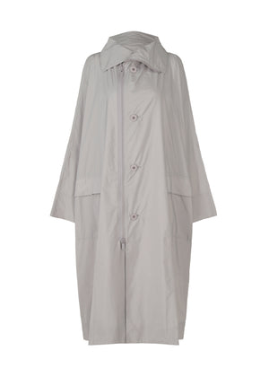 軽い生地をたっぷりと使って仕上げたコート。ボタンとファスナーで自由にスタイリングができます。