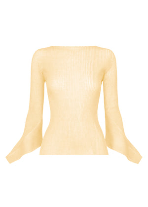 程よい透け感と袖のデザインが特徴のニット半袖トップ。ポリエステルとラミーを使用した程よいシャリ感のある風合いをお楽しみください。