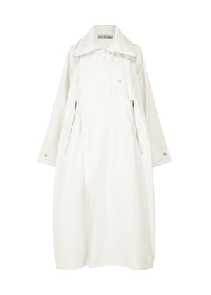 ファスナーを開けるとヨークが出てくる驚きの仕掛けが特徴のコート。程よいハリ感のポリエステルと、ヨコ糸にはリネンを使用し、本来高温で仕上げるところを極低温で仕上げることで、形状記憶素材でありながら反発感のある独特な風合いに仕上がります。ワッフルのような凹凸感のあるバーズアイ組織をオリジナルで作成し、生地にやや膨らみを持たせました。