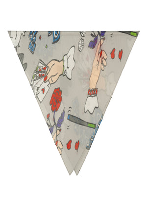 手品の道具をモチーフに、マジックペンで描いた柄をプリントしたプリーツストールです。