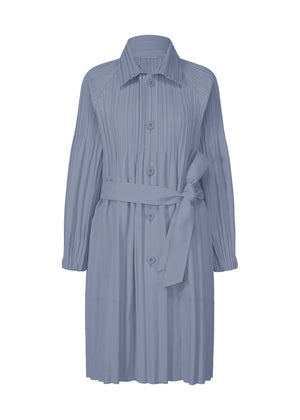 肉厚で風を通しにくく、肌寒くなる季節にぴったりな生地感のロングコート。ボタンとウエスト紐がついていて、両サイドにポケットがあります。袖の消しプリーツ加工が特徴です。